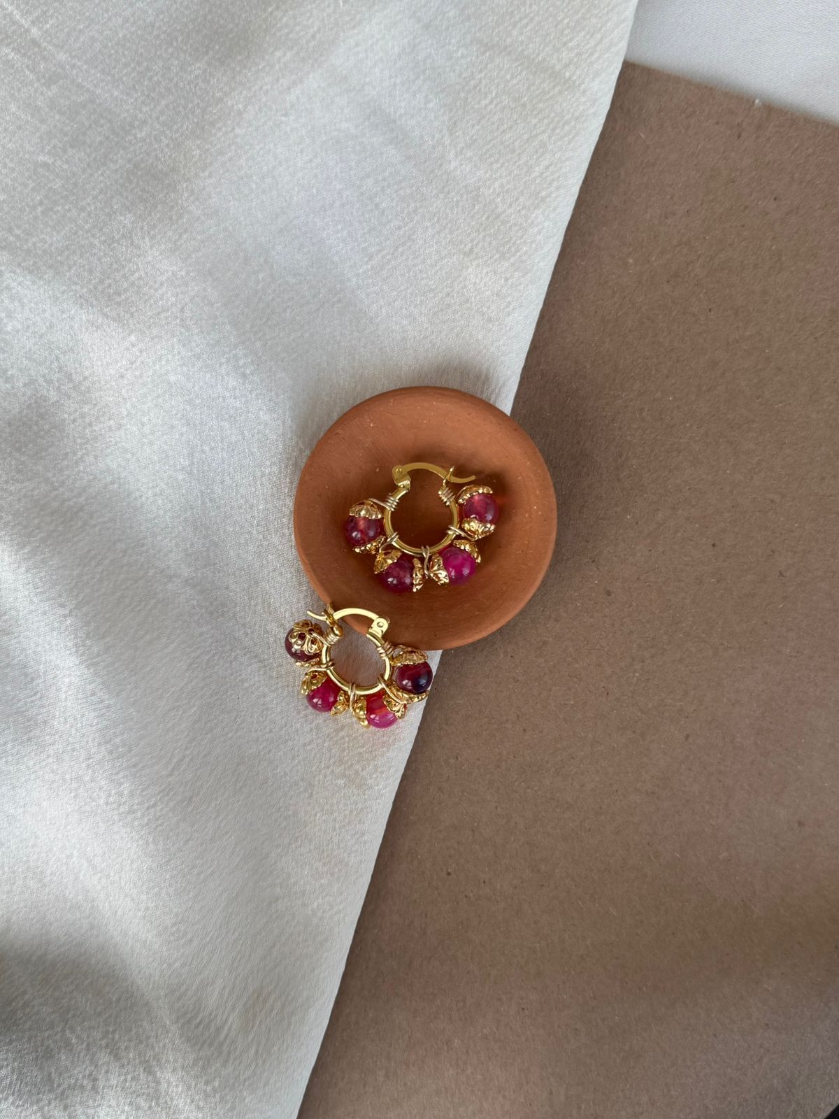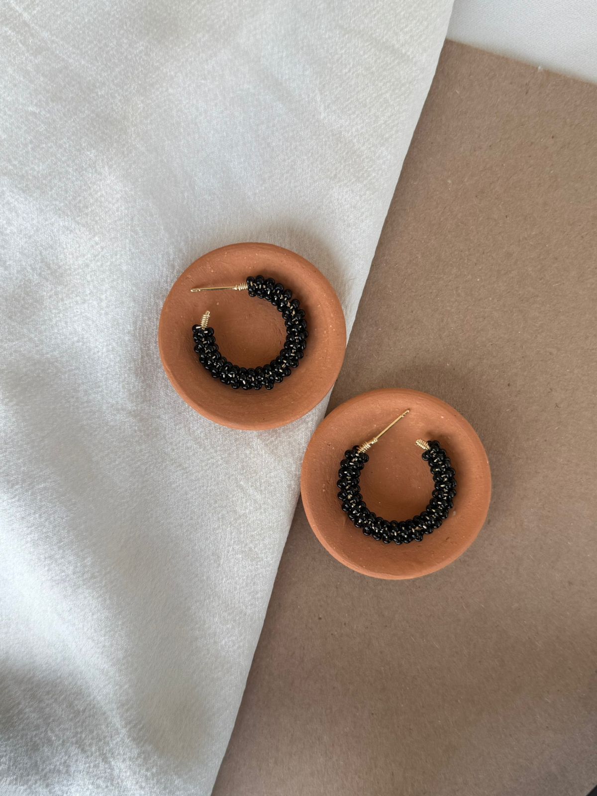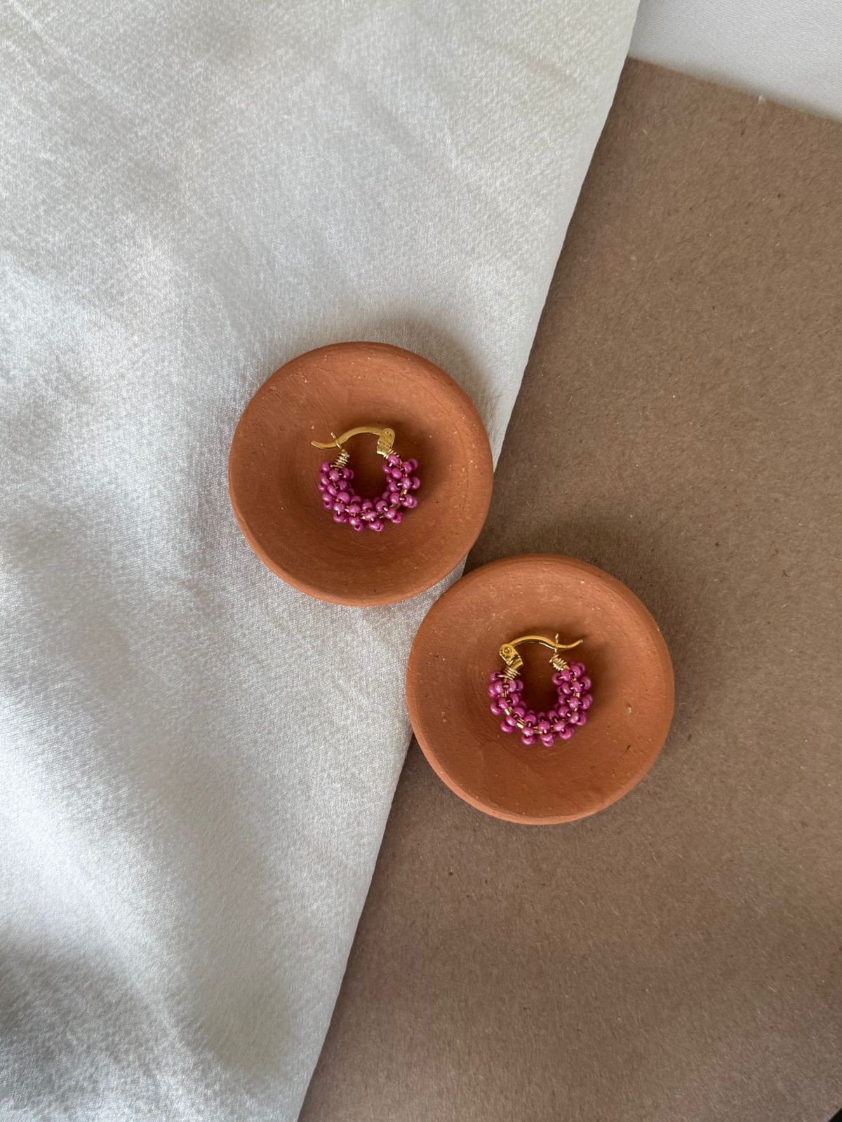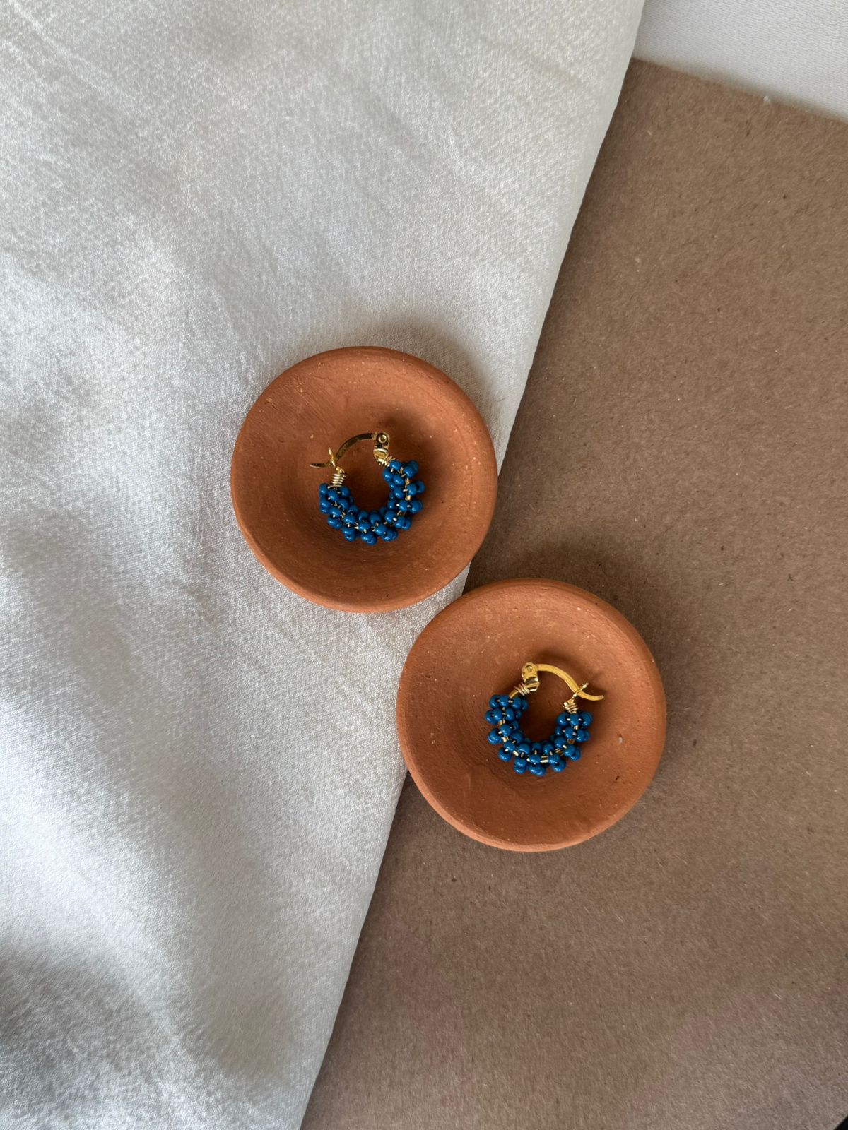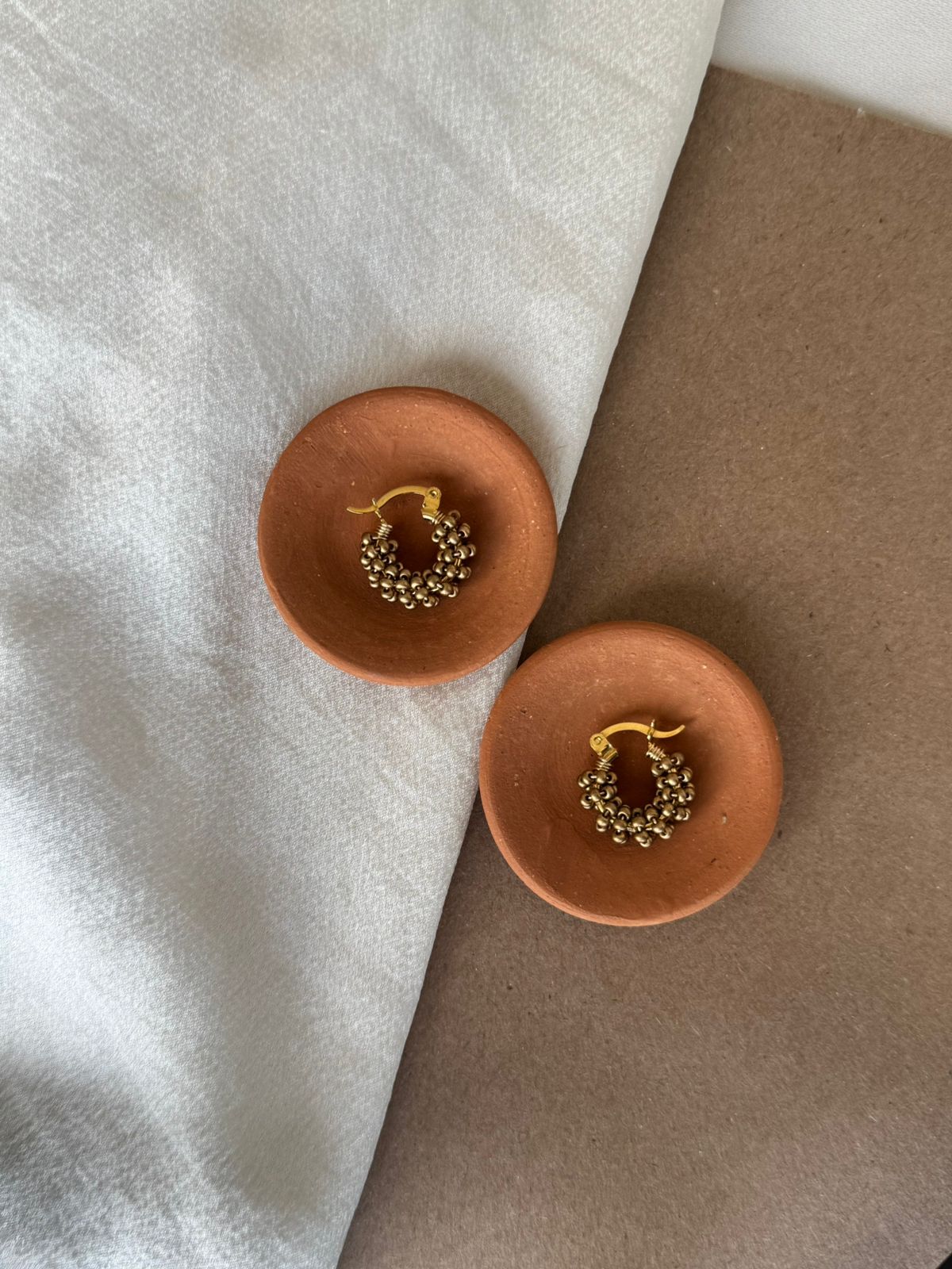 Estas arracadas doradas son una fusión perfecta entre tradición y estilo contemporáneo. Están elaboradas a mano en Guanajuato por Paty, una artesana que combina técnicas tradicionales con un diseño lleno de vida. Cada pieza está tejida cuidadosamente sobre una base con baño de oro de 18k, e incorpora cristales, chaquiras y ágatas de distintos colores, creando un juego vibrante de texturas y tonos.
